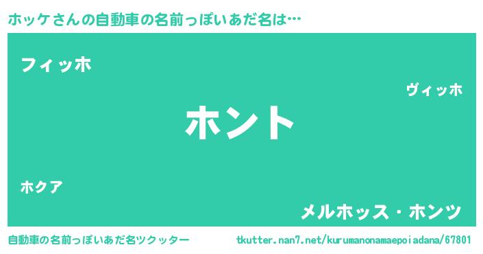 ホッケさんの自動車の名前っぽいあだ名は… 『ホント』『フィッホ』『メルホッス・ホンツ』 ツクッター #自動車の名前っぽいあだ名ツクッター http://tkutter.nan7.net/kurumanonamaepoiadana/67801/