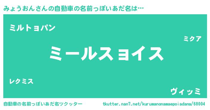 | 男性向けラノベタイトル風あだ名 | 『みょうおん~年齢イコール彼女いない歴の魔法使い~』 |
