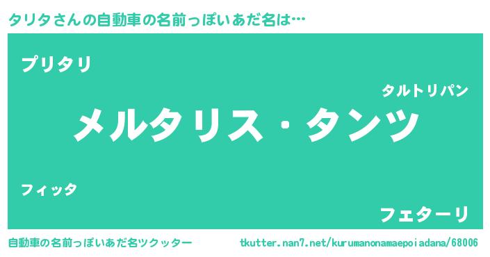 | 男性向けラノベタイトル風あだ名 | 『Re:タリタから始める異世界生活』 |
