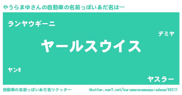 | 男性向けラノベタイトル風あだ名 | 『転生したらやうらまゆだった件』 |