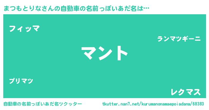 | ポケモン風あだ名 | 『ヒマツモトリナ』『マックウザ』 |