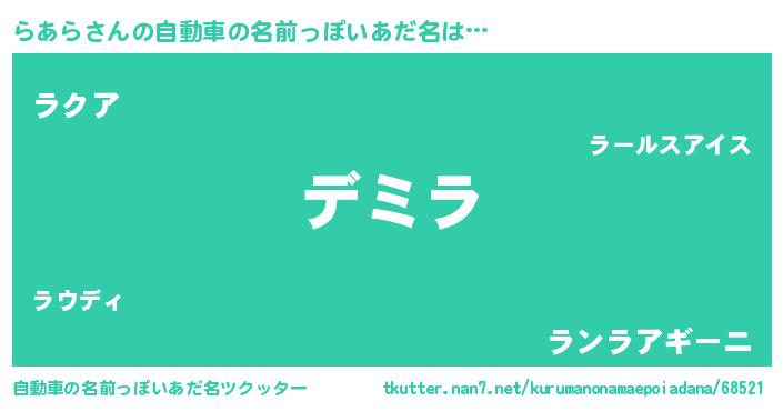 | 男性向けラノベタイトル風あだ名 | 『らあらという概念が存在しない退屈な世界 』 |
