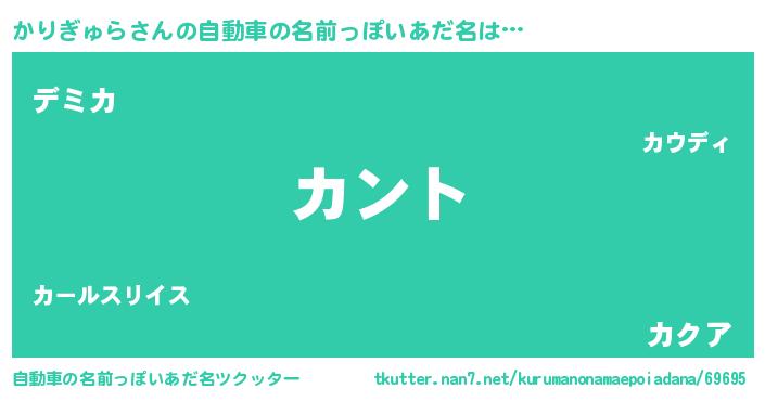 | 男性向けラノベタイトル風あだ名 | 『かりぎゅらの嫁は女の子じゃないと思った?』 |