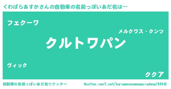 | 女子向けラノベタイトル風あだ名 | 『くわばらあすかの卵を拾いまして』 |