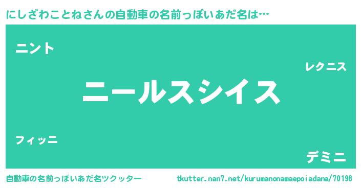 | ポケモン風あだ名 | 『ニシキング』『ヒニシザワコトネ』 |