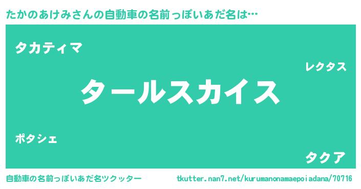 | 男性向けラノベタイトル風あだ名 | 『転生したらたかのあけみだった件』 |