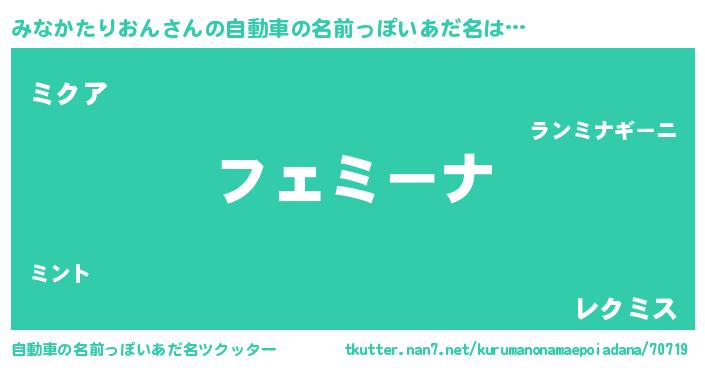 | 男性向けラノベタイトル風あだ名 | 『うちのみなかたりおんが世界を掌握している!』 |