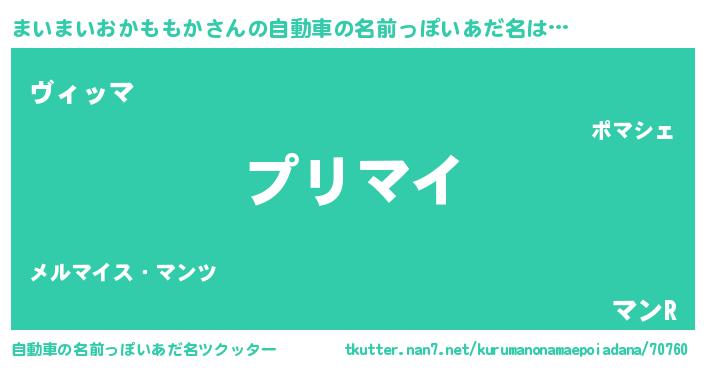 | 男性向けラノベタイトル風あだ名 | 『まいまいおかももかの憂鬱』 |
