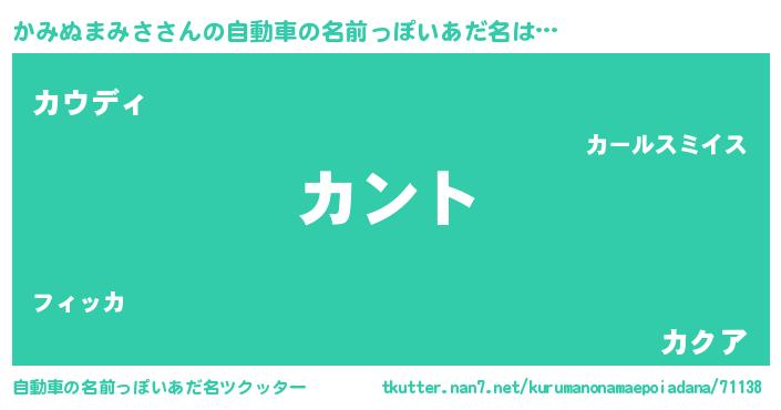 | 男性向けラノベタイトル風あだ名 | 『かみぬまみさの嫁は女の子じゃないと思った?』 |