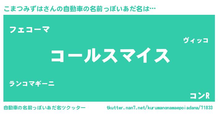 | 肩書あだ名 | 『こまつみずは上級大将』 |
