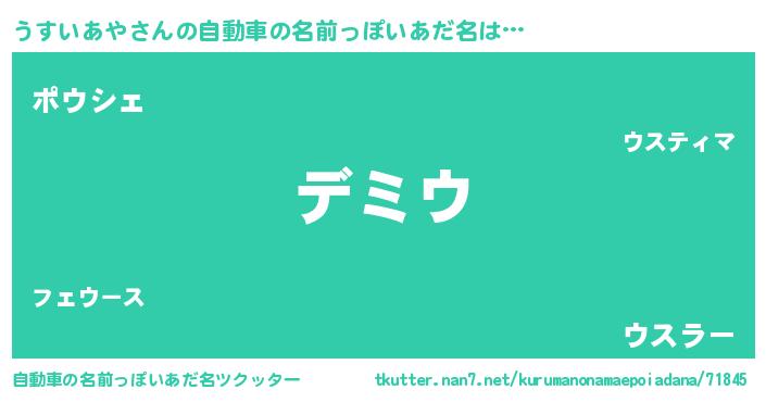 | ヒーロー風カッコイイあだ名 | 『ネオウスイアヤ』『仮面ウスダー』 |