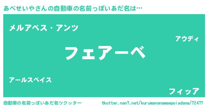 | 欧米人風あだ名 | 『あべせいや・ステッグマイヤー』 |