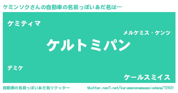 | 女子向けラノベタイトル風あだ名 | 『ケミンソクの卵を拾いまして』 |