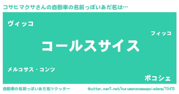 | 男性向けラノベタイトル風あだ名 | 『コサヒマクサスレイヤー』 |