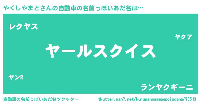 | 男性向けラノベタイトル風あだ名 | 『ヤクシヤマトスレイヤー』 |