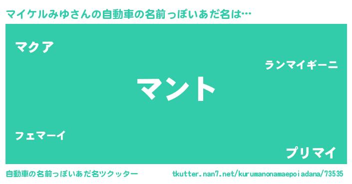 | 欧米人風あだ名 | 『ウサインマイケルみゆ』 |