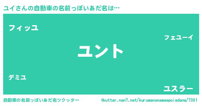 | ポケモン風あだ名 | 『ヒユイ』『ユックウザ』『ユイダネ』 |