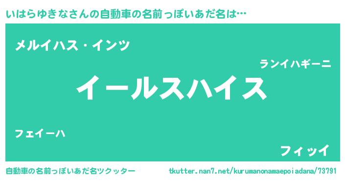 | 女子向けラノベタイトル風あだ名 | 『いはらゆきなの玉の輿計画!』 |