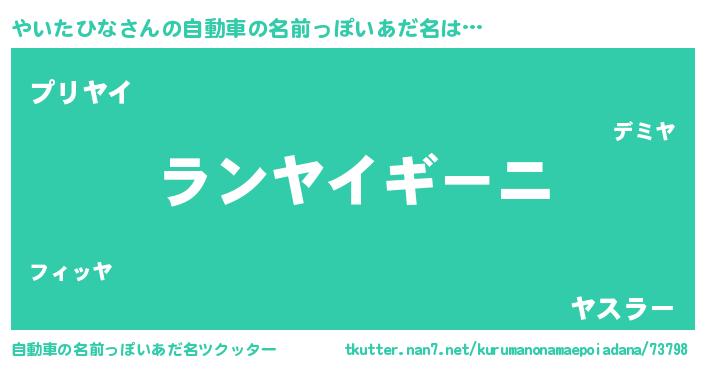 | 男性向けラノベタイトル風あだ名 | 『やいたひなに滅ぼされるだけの簡単なお仕事です』 |