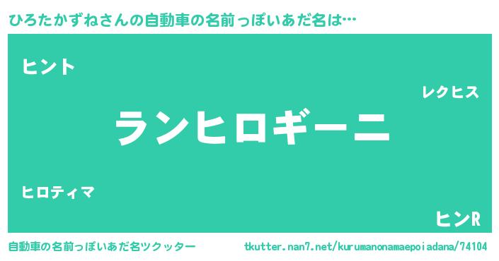 ひろたかずねさんの自動車の名前っぽいあだ名をツクッター!