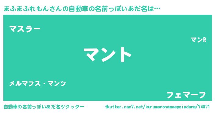 | 男性向けラノベタイトル風あだ名 | 『まふまふれもんの嫁は女の子じゃないと思った?』 |