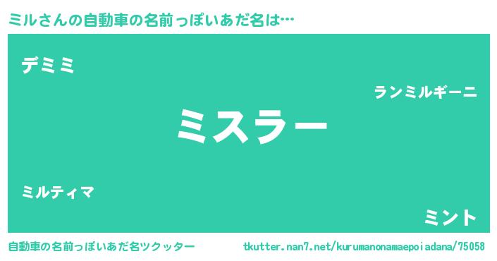 | ファンタジー風あだ名 | 『エターナルミルー』『ミルディッシュ』 |
