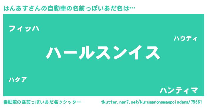 | 女子向けラノベタイトル風あだ名 | 『はんあすの玉の輿計画!』 |