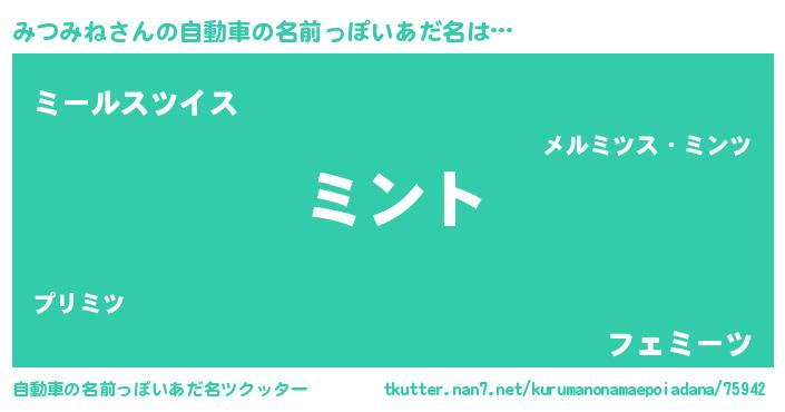 | 女子向けラノベタイトル風あだ名 | 『みつみねの卵を拾いまして』 |