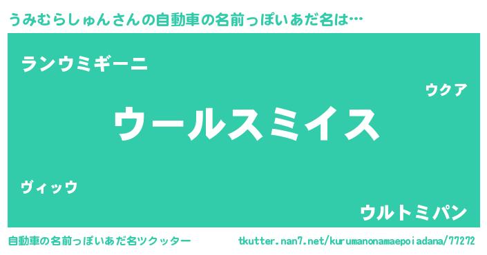 | 男性向けラノベタイトル風あだ名 | 『うみむらしゅん~年齢イコール彼女いない歴の魔法使い~』 |