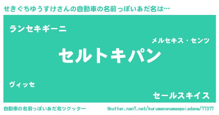 | 胡散臭い通販商品みたいなあだ名 | 『信頼と実績のサプリメント…その名も「せきぐちゆうすけ」』 |
