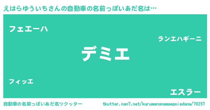 えはらゆういちさんの自動車の名前っぽいあだ名をツクッター!