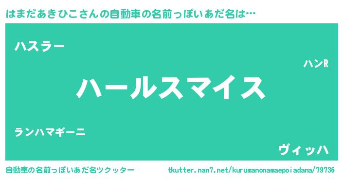| 女子向けラノベタイトル風あだ名 | 『はまだあきひこの玉の輿計画!』 |