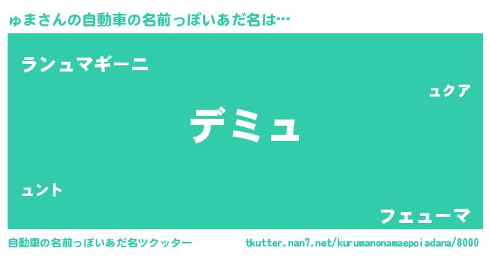 | ポケモン風あだ名 | 『ゼニュマ』『ュマゴンZ』『ュマダネ』 |