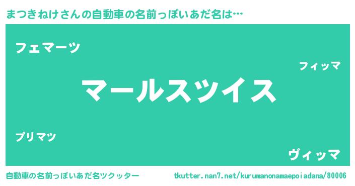 | 胡散臭い通販商品みたいなあだ名 | 『絶対に幸福をもたらす招き猫…その名も「まつきねけ」』 |