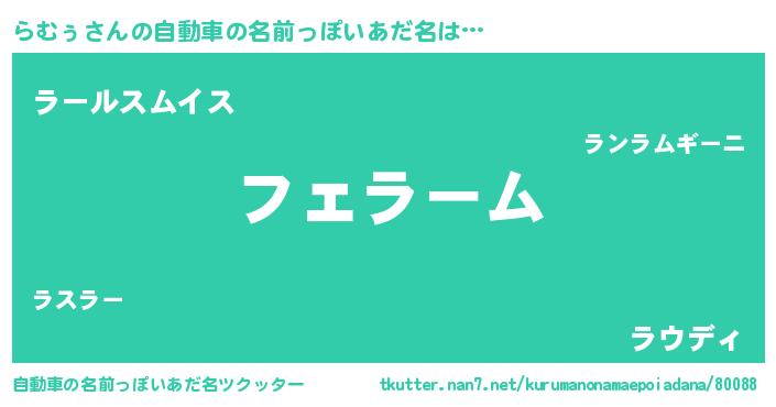 | 欧米人風あだ名 | 『らむぅ・ステッグマイヤー』 |