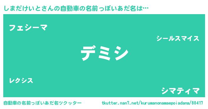 | 欧米人風あだ名 | 『ダルビッシュしまだけいと』 |