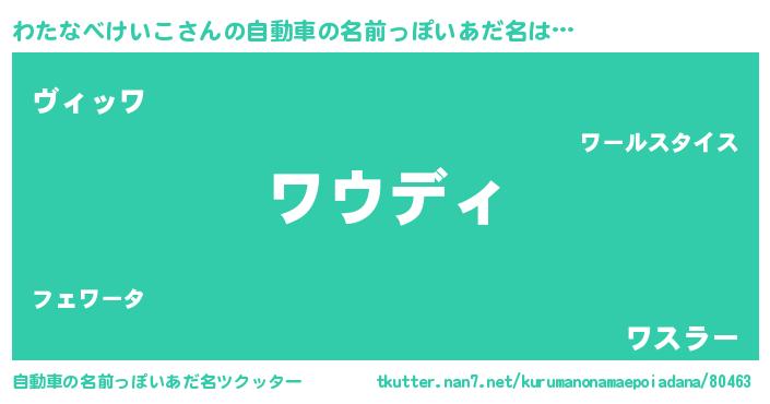 | 意味不明あだ名 | 『住所不定無職わたなべけいこ(12歳)』 |