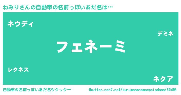 | ヒーロー風カッコイイあだ名 | 『仮面ネミダー』『ウルトラねみりマン』 |