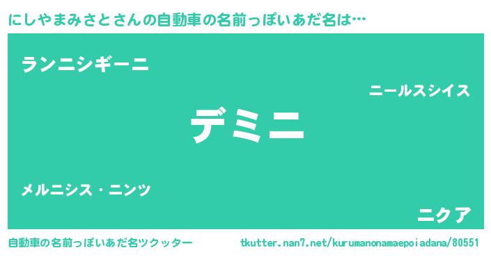 | 欧米人風あだ名 | 『ダルビッシュにしやまみさと』 |
