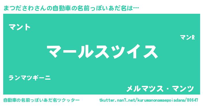 | ポケモン風あだ名 | 『マツキング』『ヒマツダサワ』 |