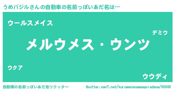 | 意味不明あだ名 | 『自称うめバジル』『永久保存うめバジル』 |