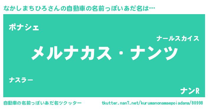 | ヘコむあだ名 | 『なまこ酢』『なかっふぃ~』 |