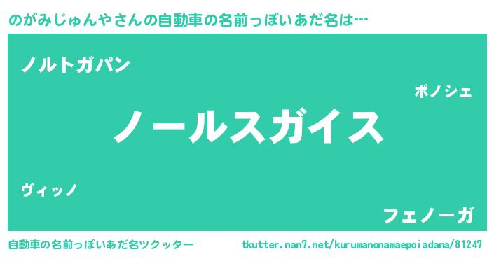 | 女子向けラノベタイトル風あだ名 | 『のがみじゅんやの玉の輿計画!』 |