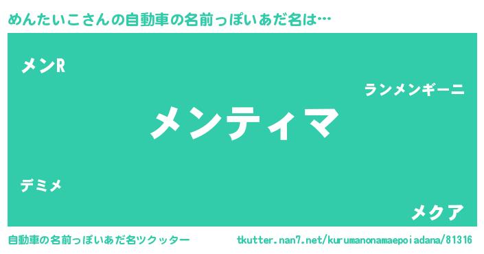 | ヒーロー風カッコイイあだ名 | 『スーパーメンタイコ』『ネオメンタイコ』 |