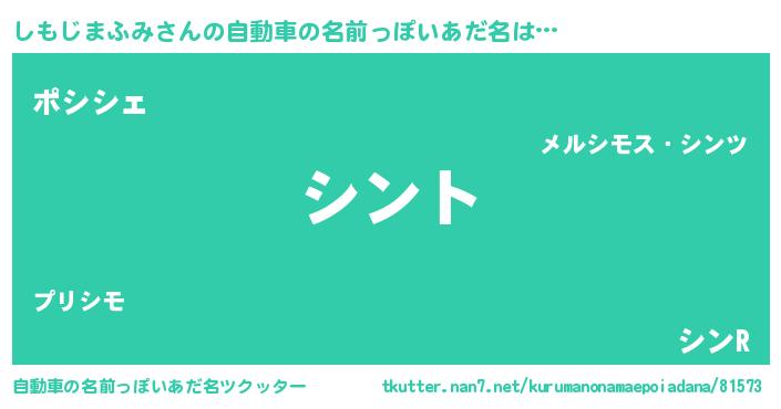 | 女子向けラノベタイトル風あだ名 | 『しもじまふみの卵を拾いまして』 |