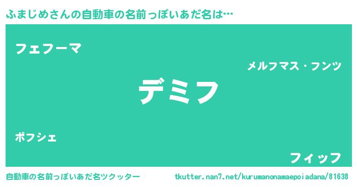 | 男性向けラノベタイトル風あだ名 | 『ふまじめという概念が存在しない退屈な世界 』 |