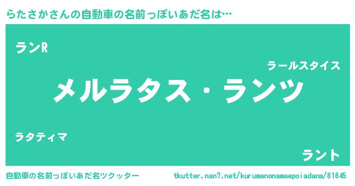 | 意味不明あだ名 | 『自称らたさか』『めかぶ科らたさか属』 |