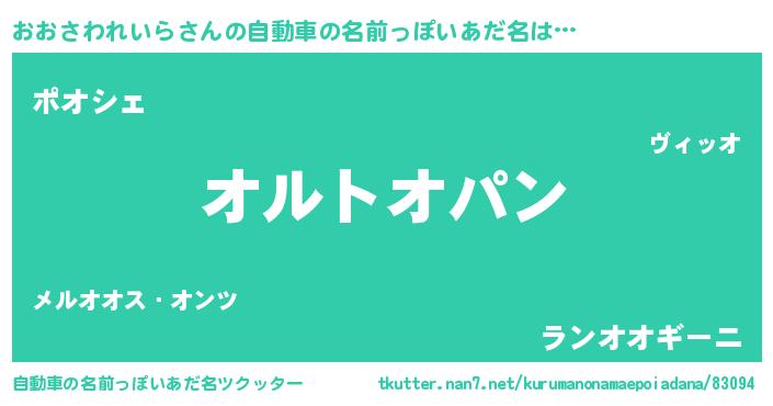 | 欧米人風あだ名 | 『ウサインおおさわれいら』 |