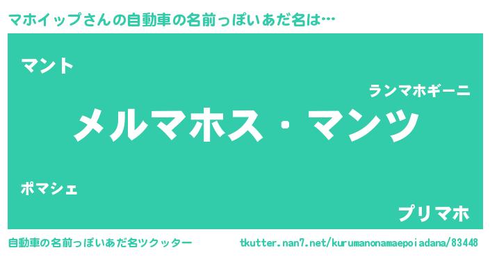 | 男性向けラノベタイトル風あだ名 | 『Re:マホイップから始める異世界生活』 |