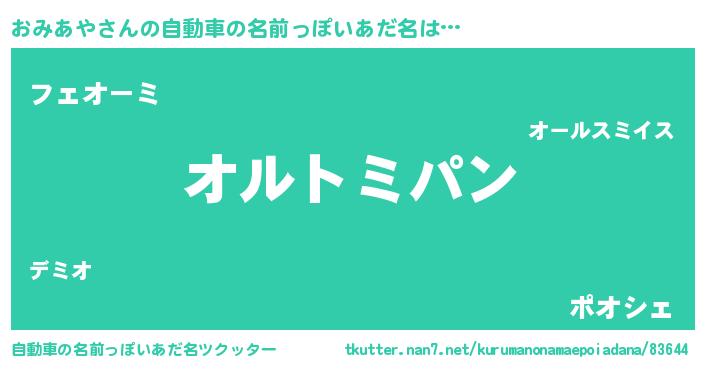 | 胡散臭い通販商品みたいなあだ名 | 『信頼と実績のサプリメント…その名も「おみあや」』 |